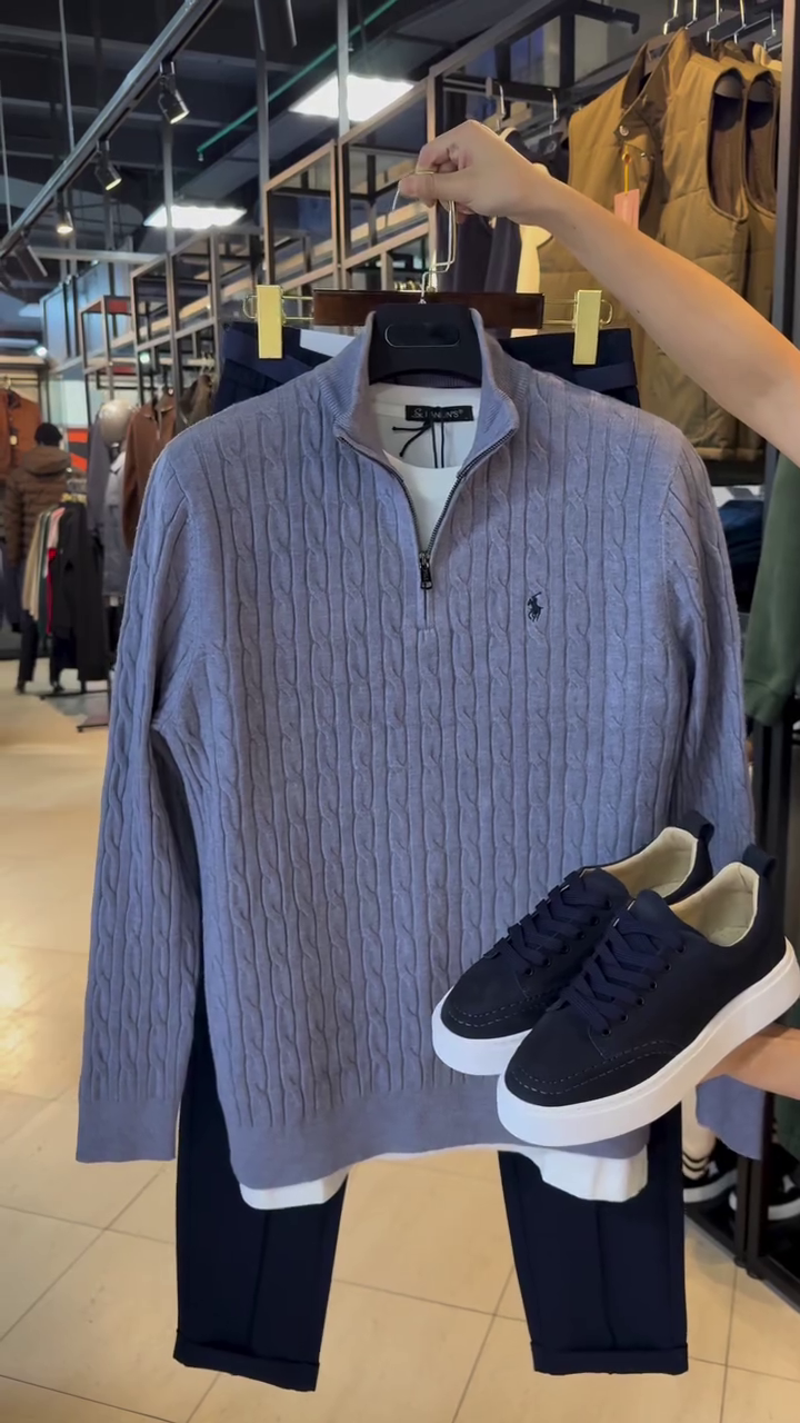 • The Quarter-Zip Placket: It usually features a concealed zipper with a tonal fabric binding, topped with a metal slider that is often engraved with “Polo” or the brand’s logo.
