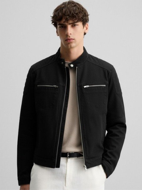 Pair the jacket with a black T-shirt, black slim jeans, and black leather boots. To make this work, mix your textures: use a matte cotton T-shirt, the textured denim jacket, and polished leather boots so the outfit doesn’t look flat.
