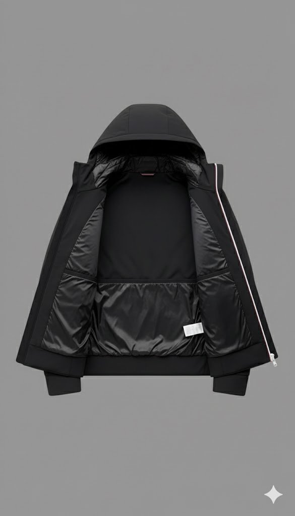 The design features Moncler’s signature elements — a sleek silhouette, a structured hood, premium zipper hardware, and the iconic Moncler logo patch that stands as a mark of authenticity and prestige. Functional pockets offer secure storage, while the adjustable details allow you to personalize fit and comfort.