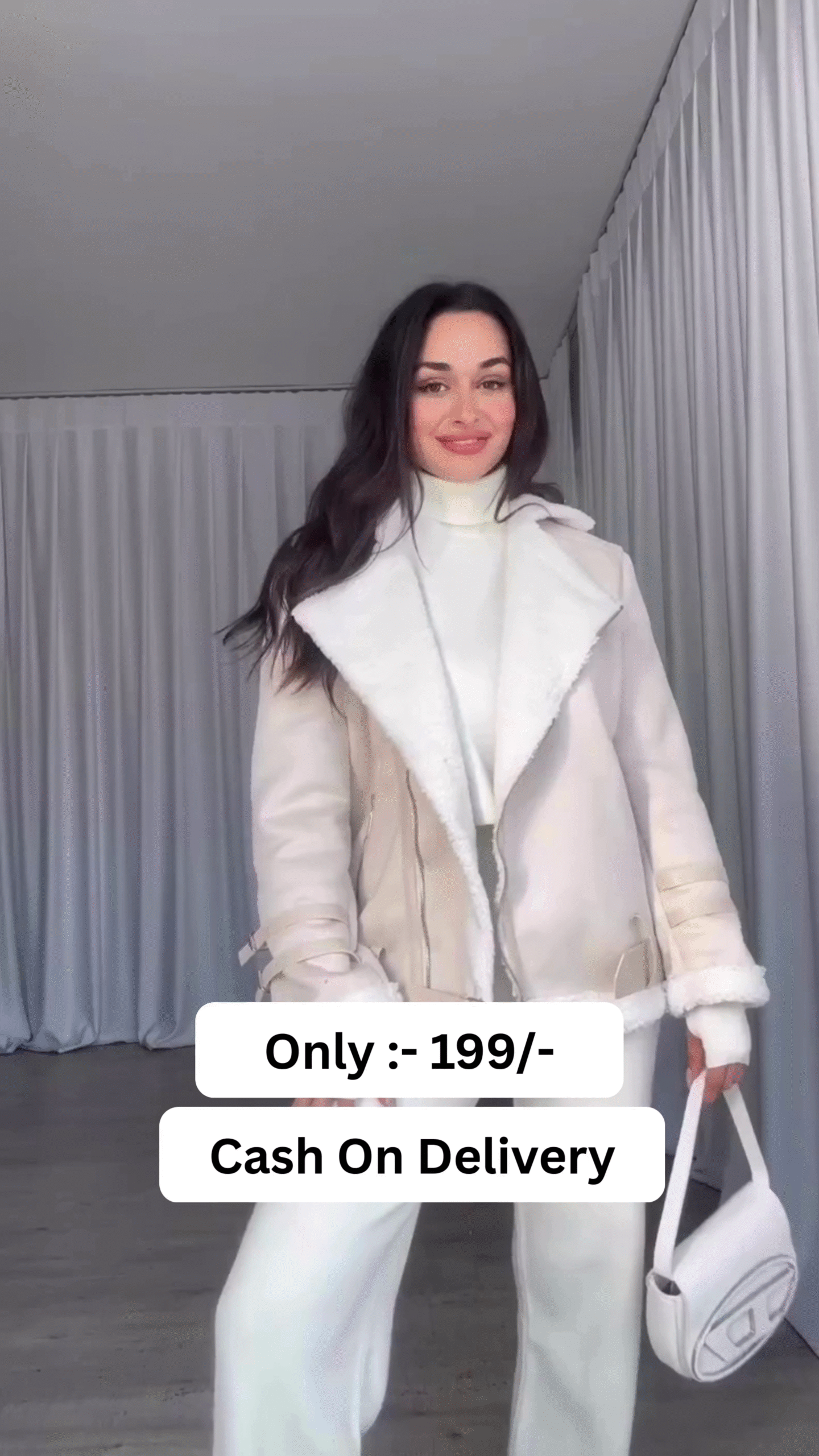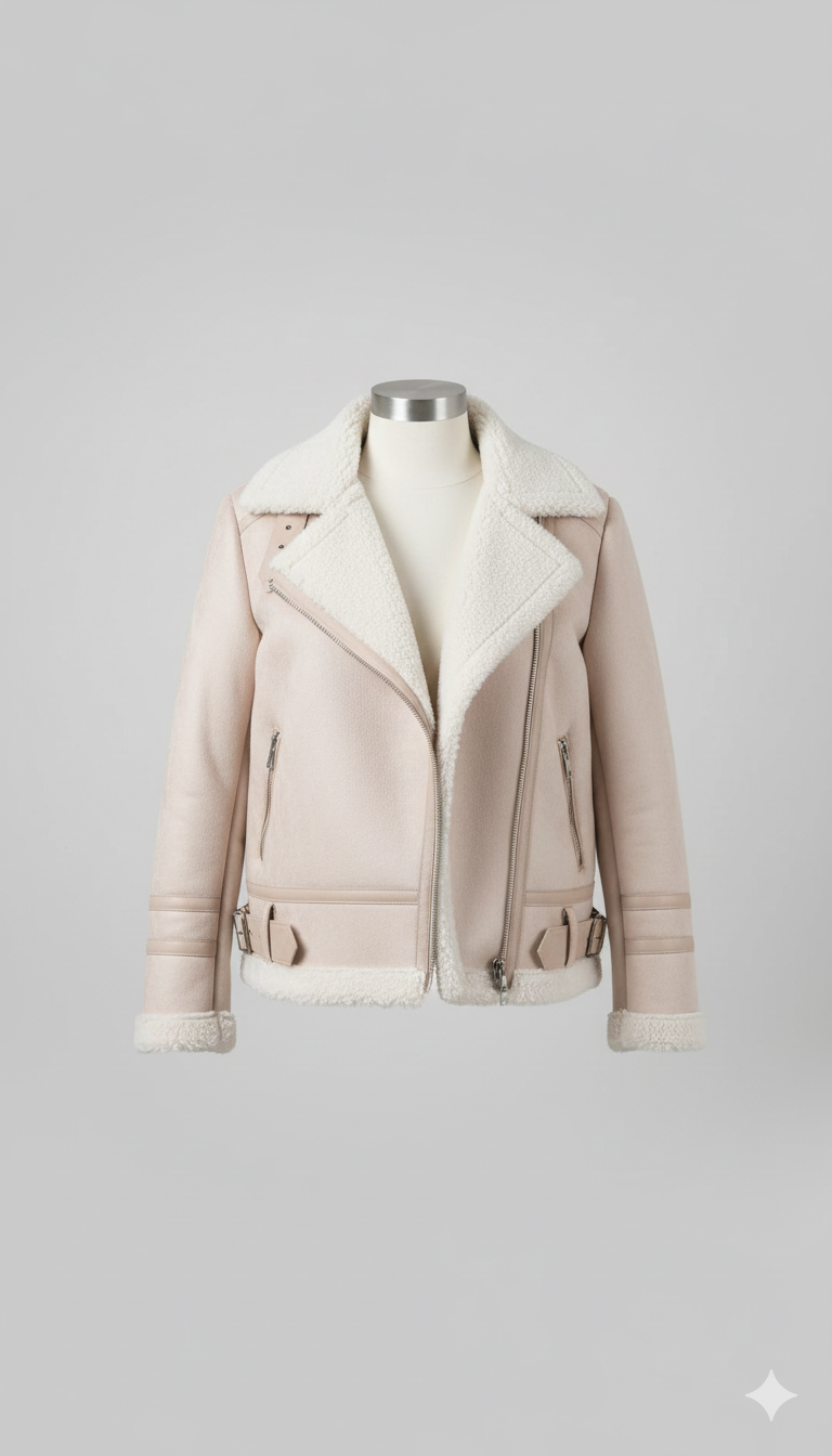 The jacket boasts a classic moto-style design, inspired by biker fashion but reimagined for modern winter needs. It features bold lapels, metallic zippers, structured shoulders, and a fitted silhouette that compliments your body shape. The moto elements add a touch of edginess, making this jacket perfect for anyone who loves a strong, confident, and chic fashion vibe. When combined with the cozy shearling edges that peek out from the collar, wrist cuffs, and hem, the look becomes a unique blend of tough and soft—powerful yet sophisticated.